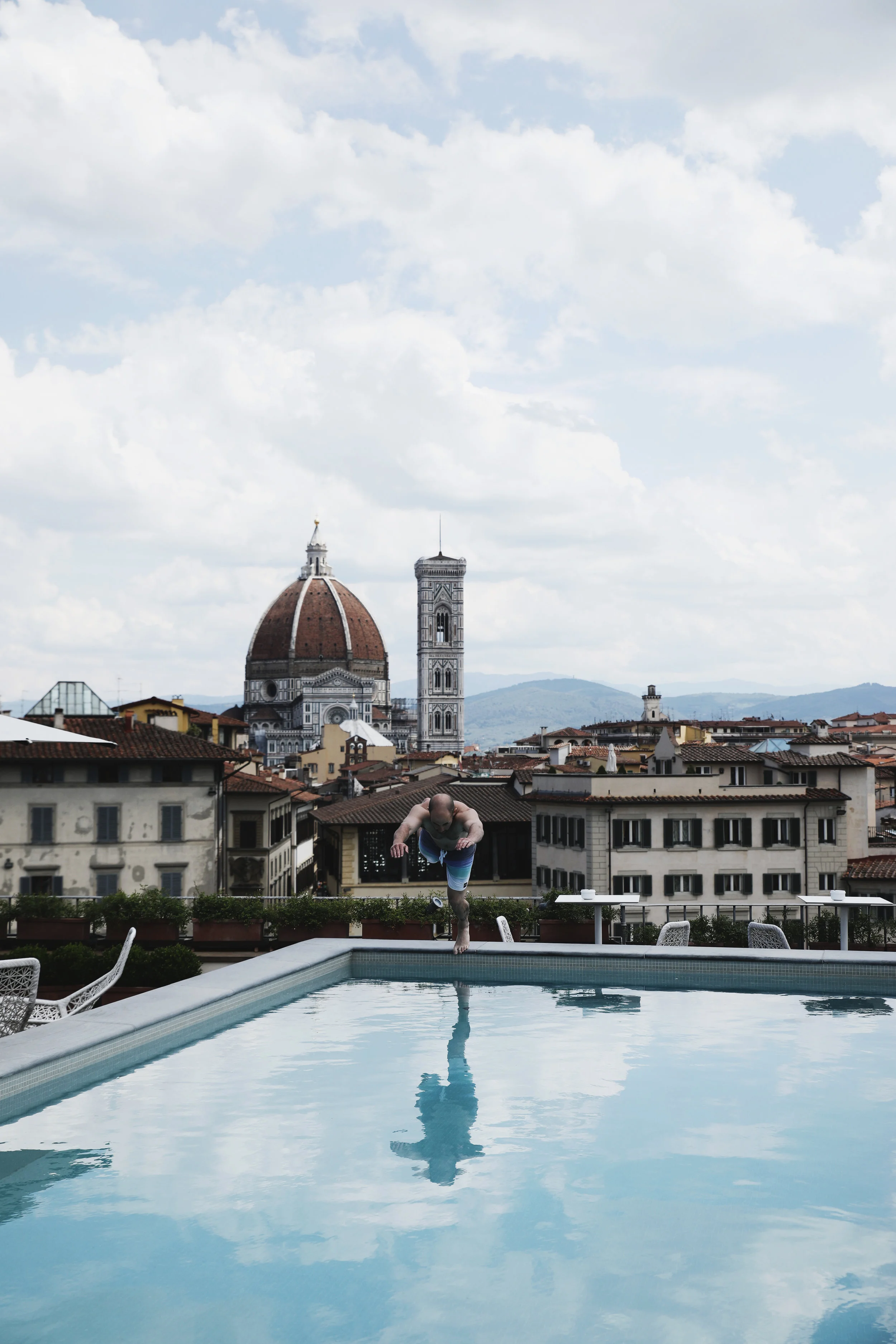 After a short lived trip in Venice we were off to Florence. Many recommend the best place to get a view of the city and the Duomo is Viale Michelangelo which we definitely did, however we have to argue the best view of the city was from our bed. Waking up to birds chirping as the sky turned from black to purple to blue was something we could have not planned for better. Roaming the streets and touring churches and learning the history or artwork and sculptures, grabbing three lunches and hanging out at pools overlooking the city, Florence was by far a favorite on our travels through the country.